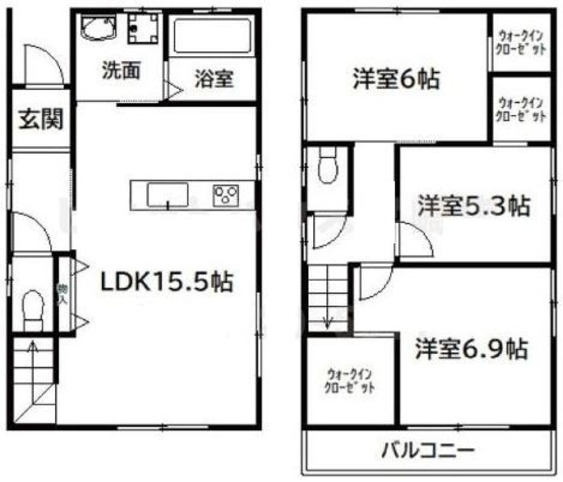 3LDK(LDK15.5帖、洋室6.9帖、洋室6帖、洋室5.3帖)